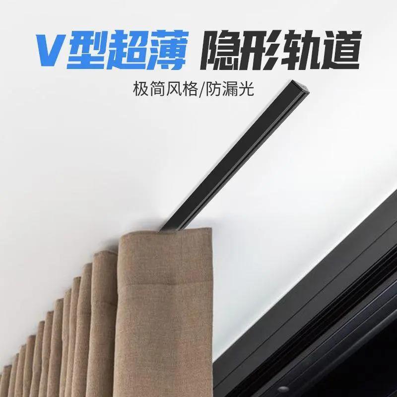 超薄型ステルス穴なしv型アルミ合金軌道カーテン軌道静音スライドレールトップにシングル双軌道直軌道を取り付ける