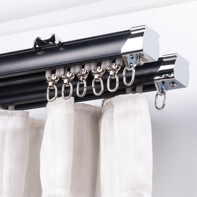 カーテンの軌道の滑車のセットのレールのフックのアルミニウム合金の単双レールのトップは側に静音のスライドのカーテンの竿を詰めます。