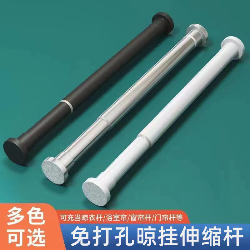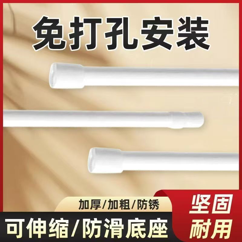 穴なし伸縮ロッドカーテンロッド寝室釘なし取付物干しロッドラックトイレ収縮ロッドカーテン掛けロッド厚さ