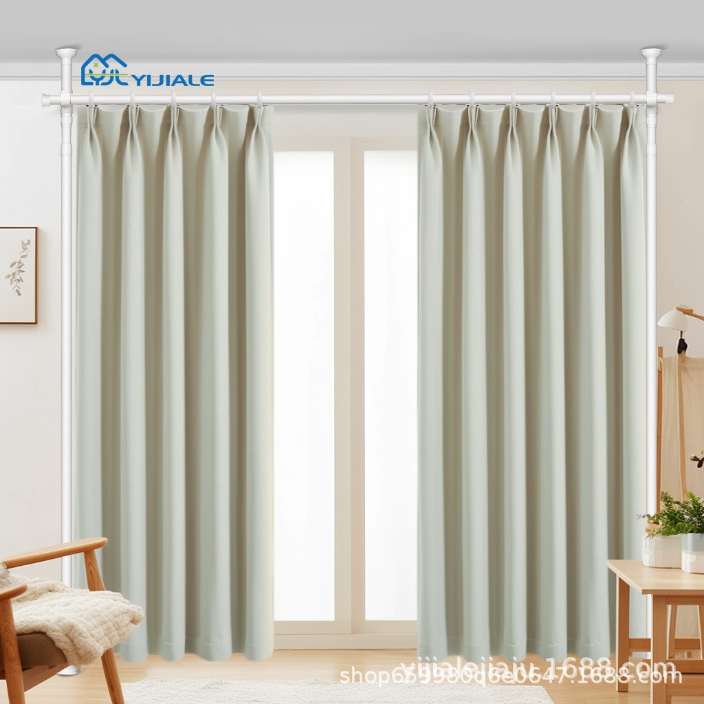 多機能金属カーテンロッド穴なし伸縮ロッドドア枠支持ロッド卸売り代理カーテンホルダーピンなし