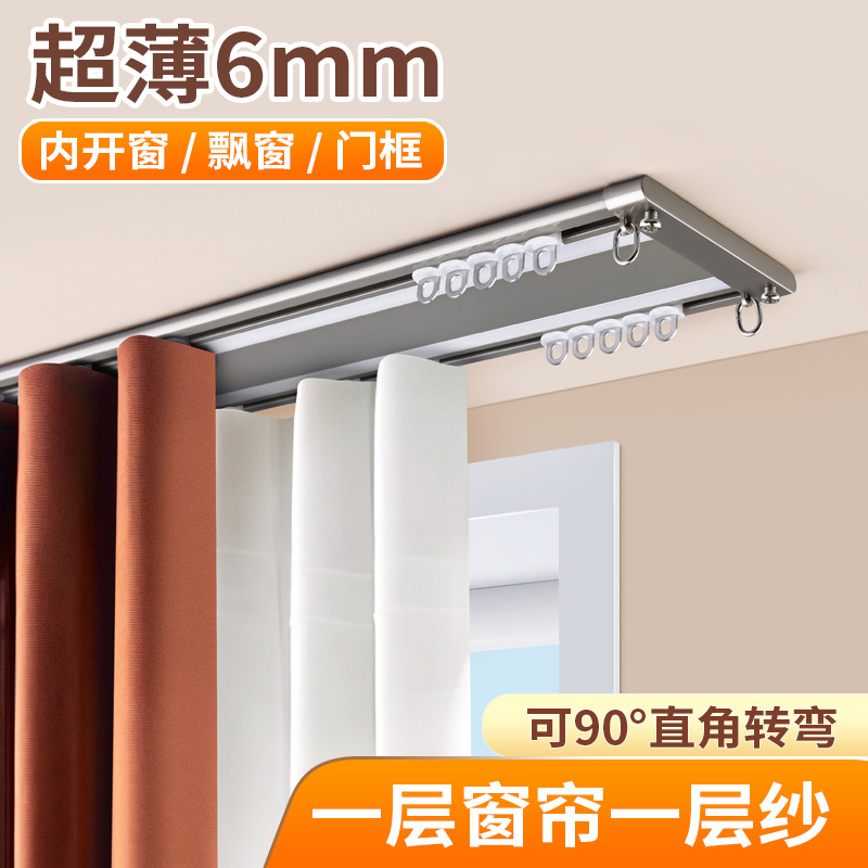 超薄カーテン軌道静音カーテンロッド内開窓シュートアルミ合金ステルストップガイド穴なしスライドレール