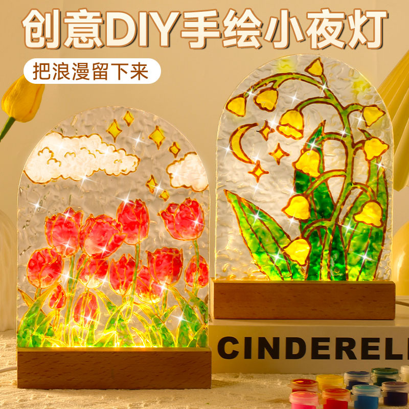 Diyチューリップ手描きガラス画ナイトライト材料バッグデジタル充填雰囲気感プレゼント幼稚園イベント