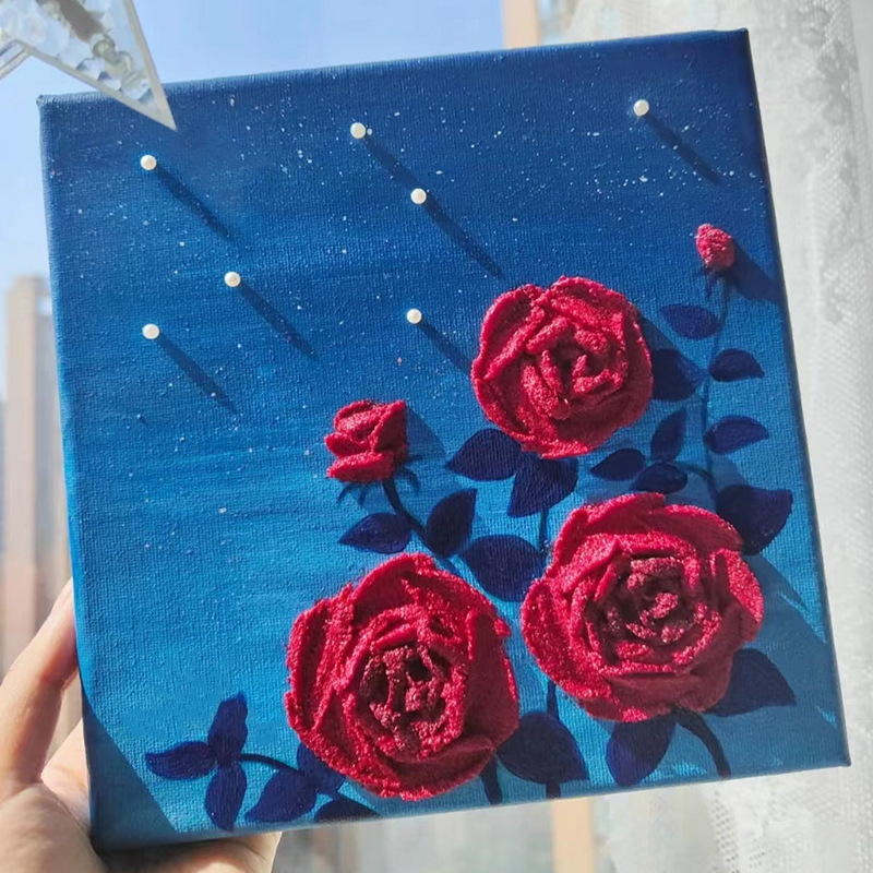 立体浮雕画デジタル油絵児童美術砂画アクリル団建筋理画diy材料包陵澶