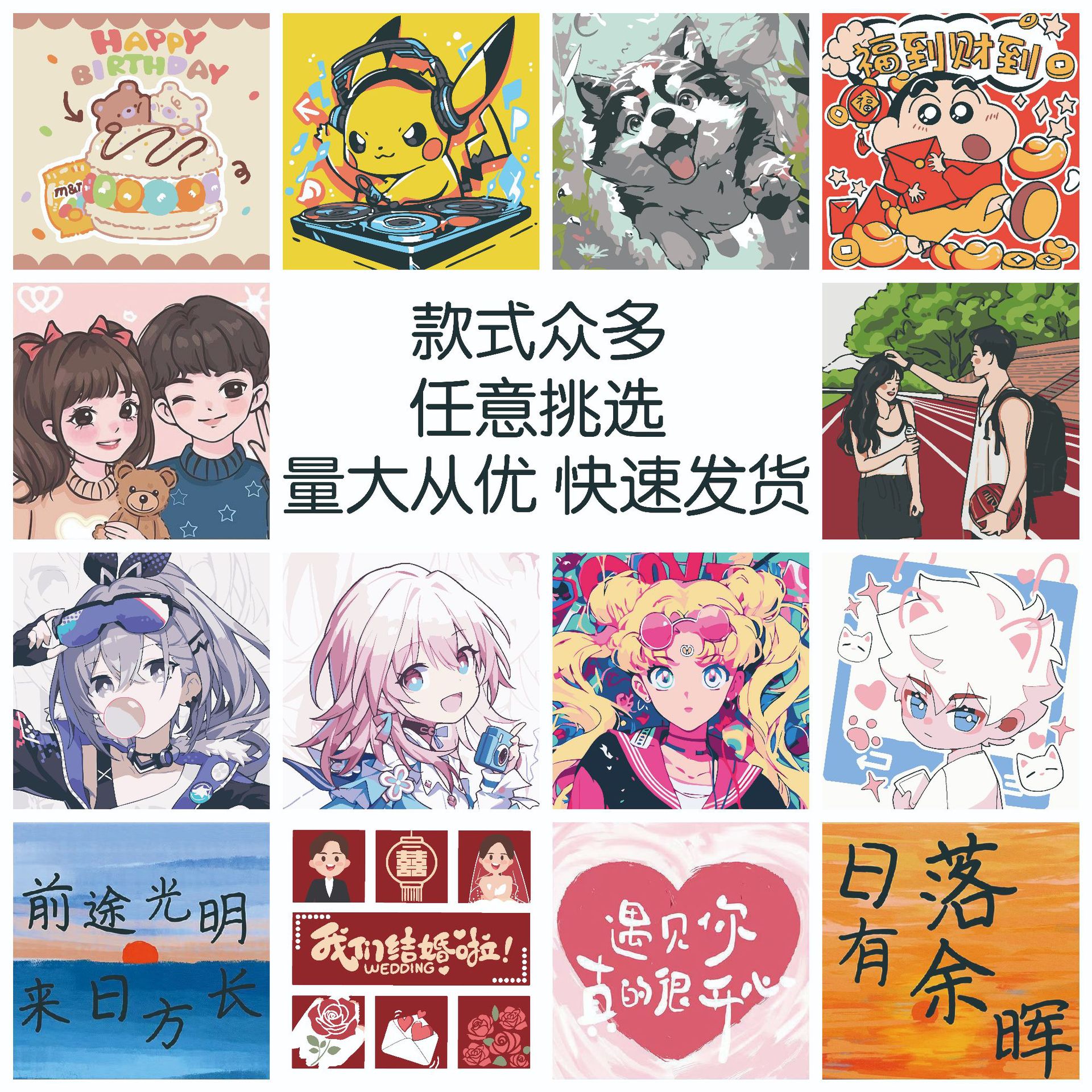 アニメ二次元デジタル油絵diy子供手描き塗りアクリル油絵充填装飾画卸売り