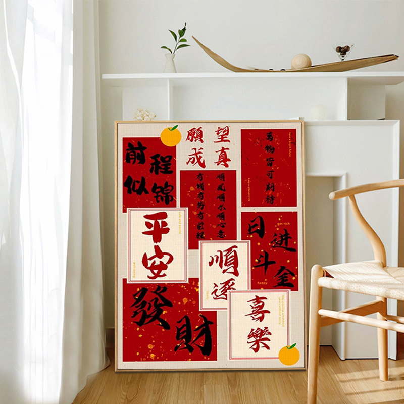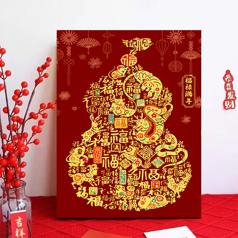 デジタル油絵diy塗り絵新年文字暴富柿如意手作りアクリル充填油彩装飾