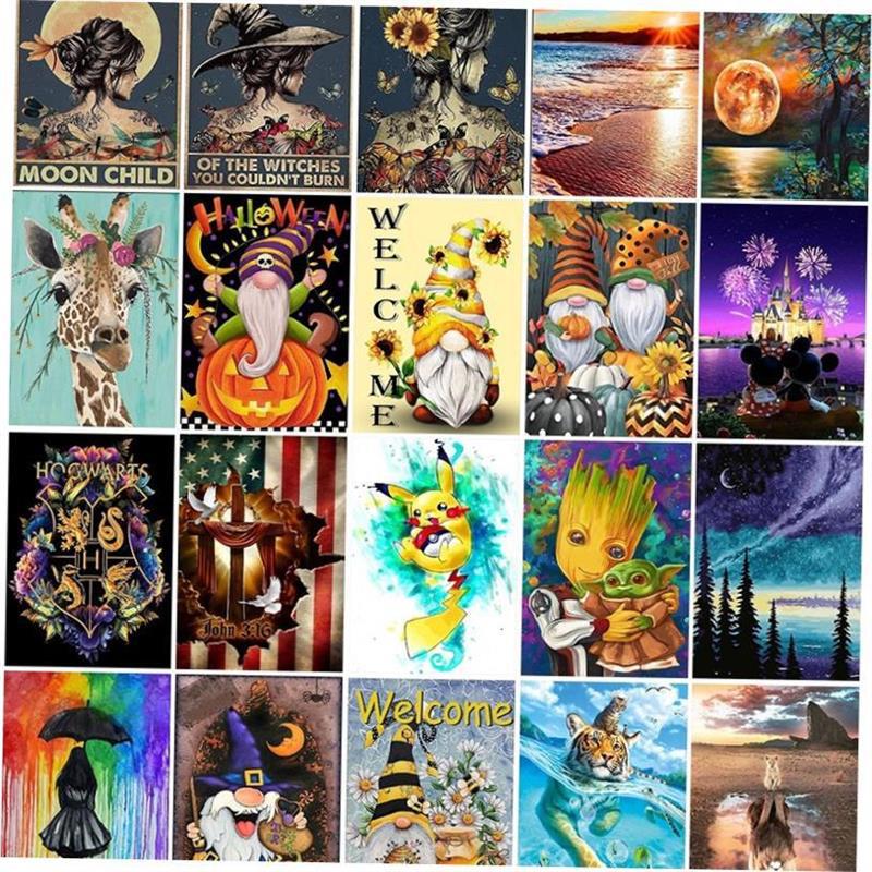 デジタル油絵diy子供漫画キャラクター風景塗り絵手描き油絵手描きアニメ塗り絵バッチ