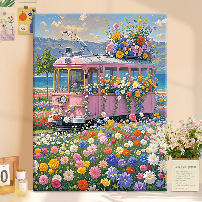 花の列车 | diyデジタル油絵アクリル充填手描き道路風景癒し系減圧油彩塗り絵