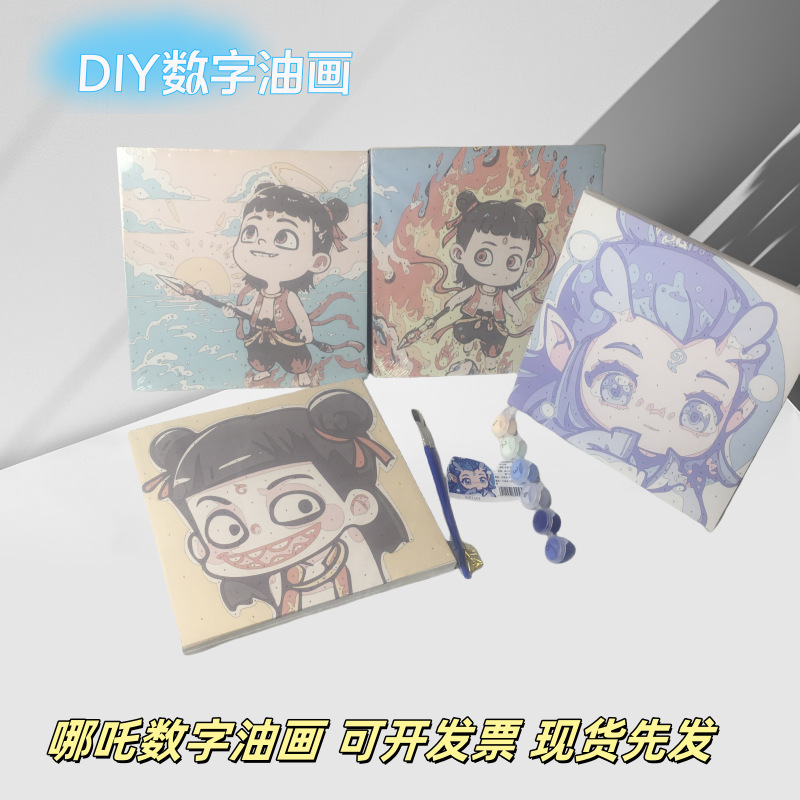 Q バージョン Nezha Ao Bing 2 デジタル油絵 diy 着色手描き油絵の具充填漫画子供アニメーション学生落書き