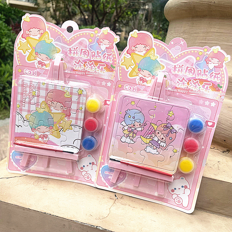 クリエイティブ三合一パズル塗り絵セット8968子供手作りパズルdiy漫画シール水彩画