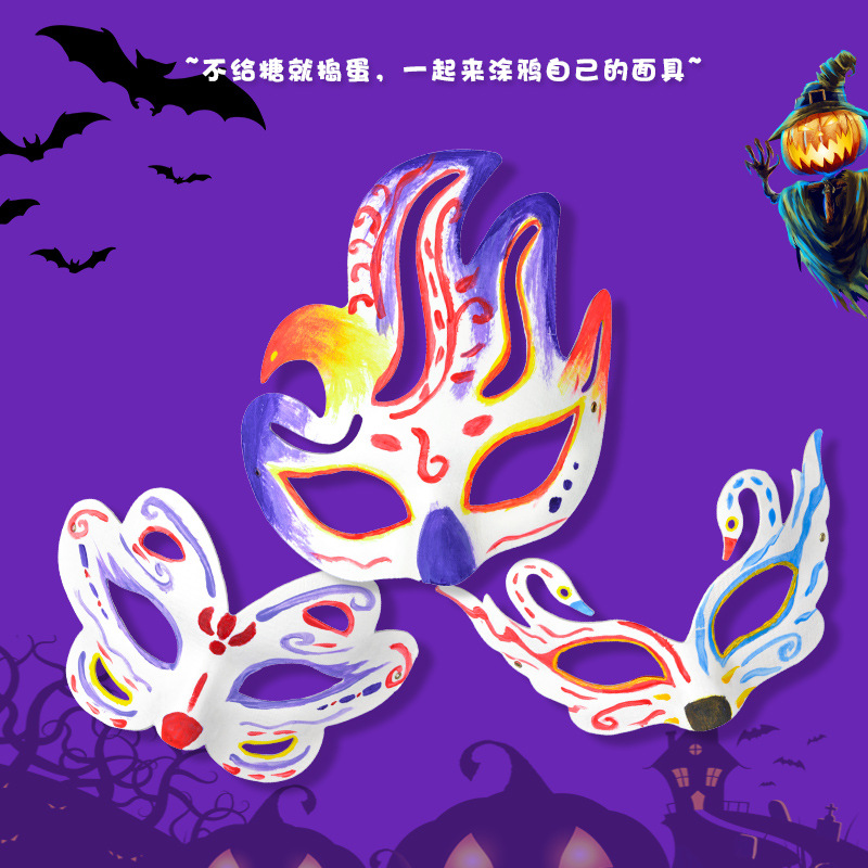DIY空白マスクキツネ白い手絵画京劇フェイスブック幼稚園の祝日イベント児童手作り