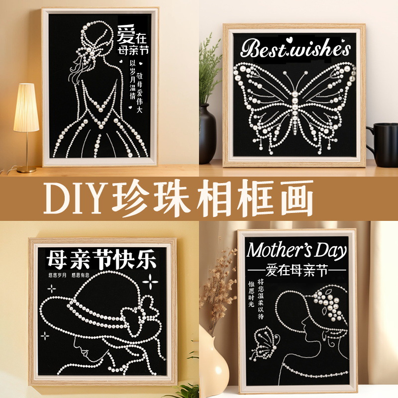 手作りのdiy真珠画の額縁画のアイデアの材料は蝶を飾って母の日のプレゼントを描きます。