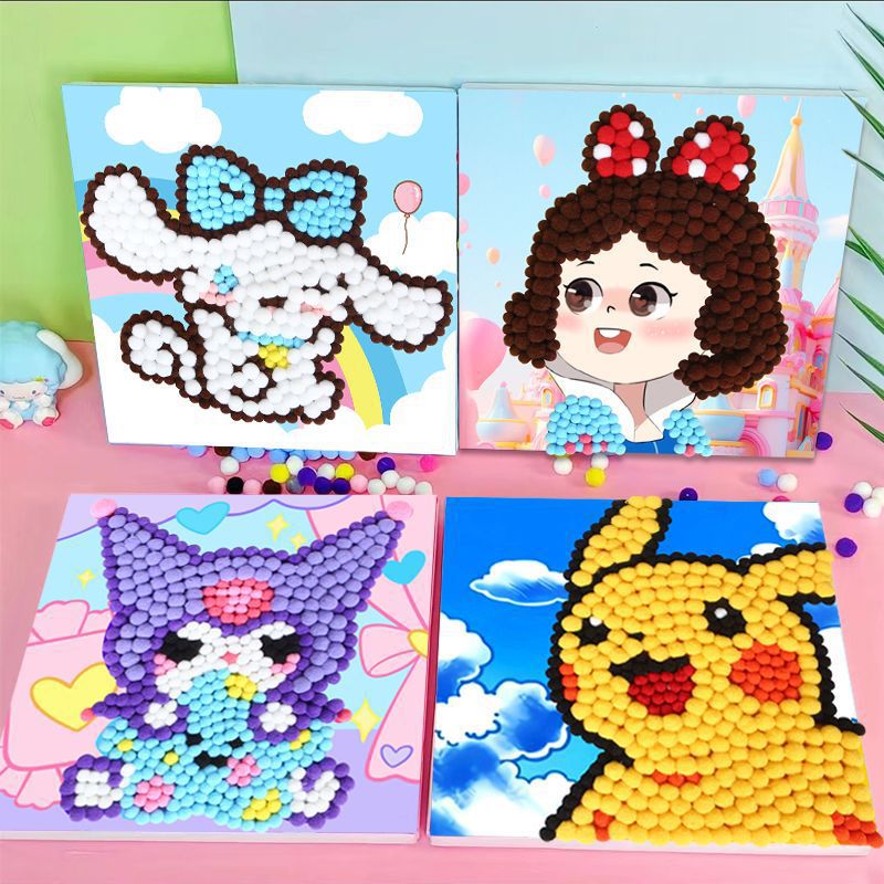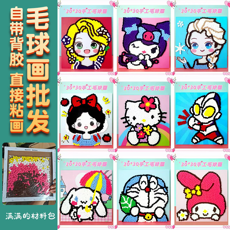 毛玉画30 × 30セットの材料バッグ漫画手作りdiy親子活動幼稚園貼り毛玉画