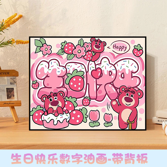 クロスボーダーデジタル油絵アニメ漫画スポンジ赤ちゃん卵仔サンリオ手作りdiy装飾寝室いちご熊