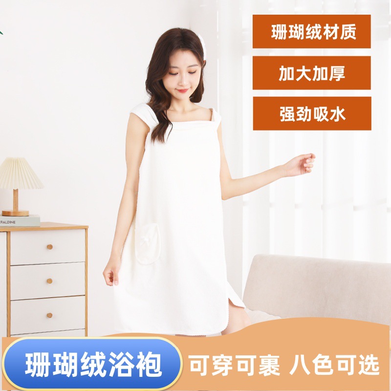 メーカー卸売りサンゴのベルベットのスカートは吸水を厚くしてバスタオルを着ることができる家庭用入浴は純綿のバスローブより柔らかいa類である