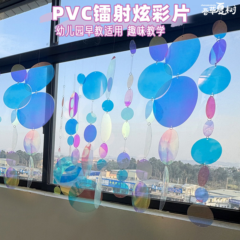 PVC カラフルなシートレーザーファントムディスク透明色ラウンドプラスチックシート幼稚園環境創造 diy チャーム素材