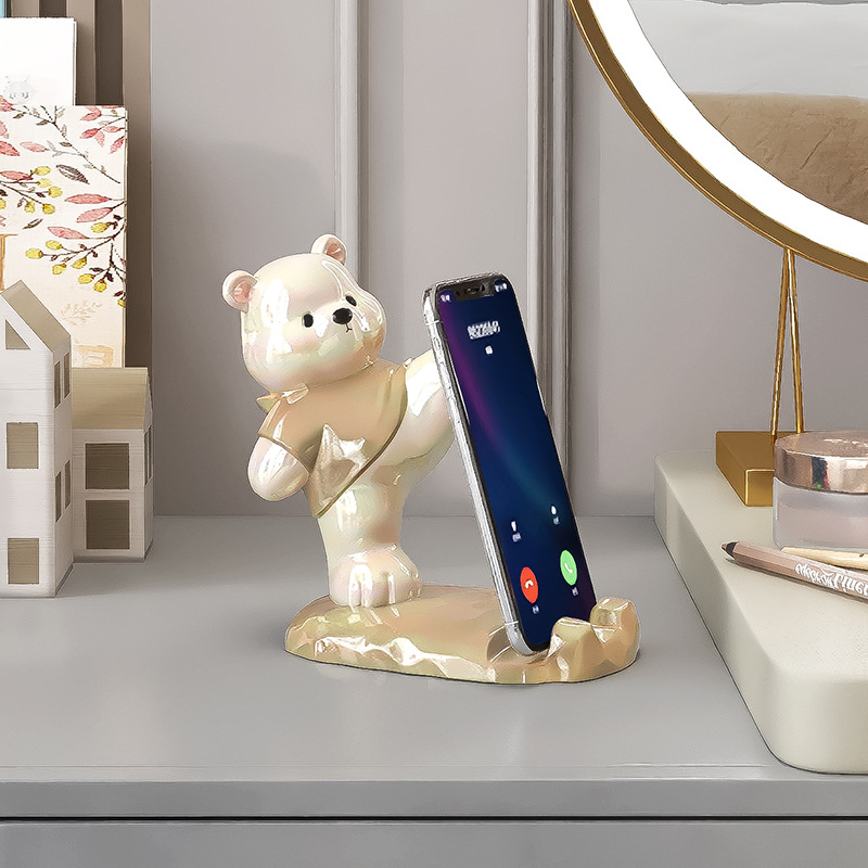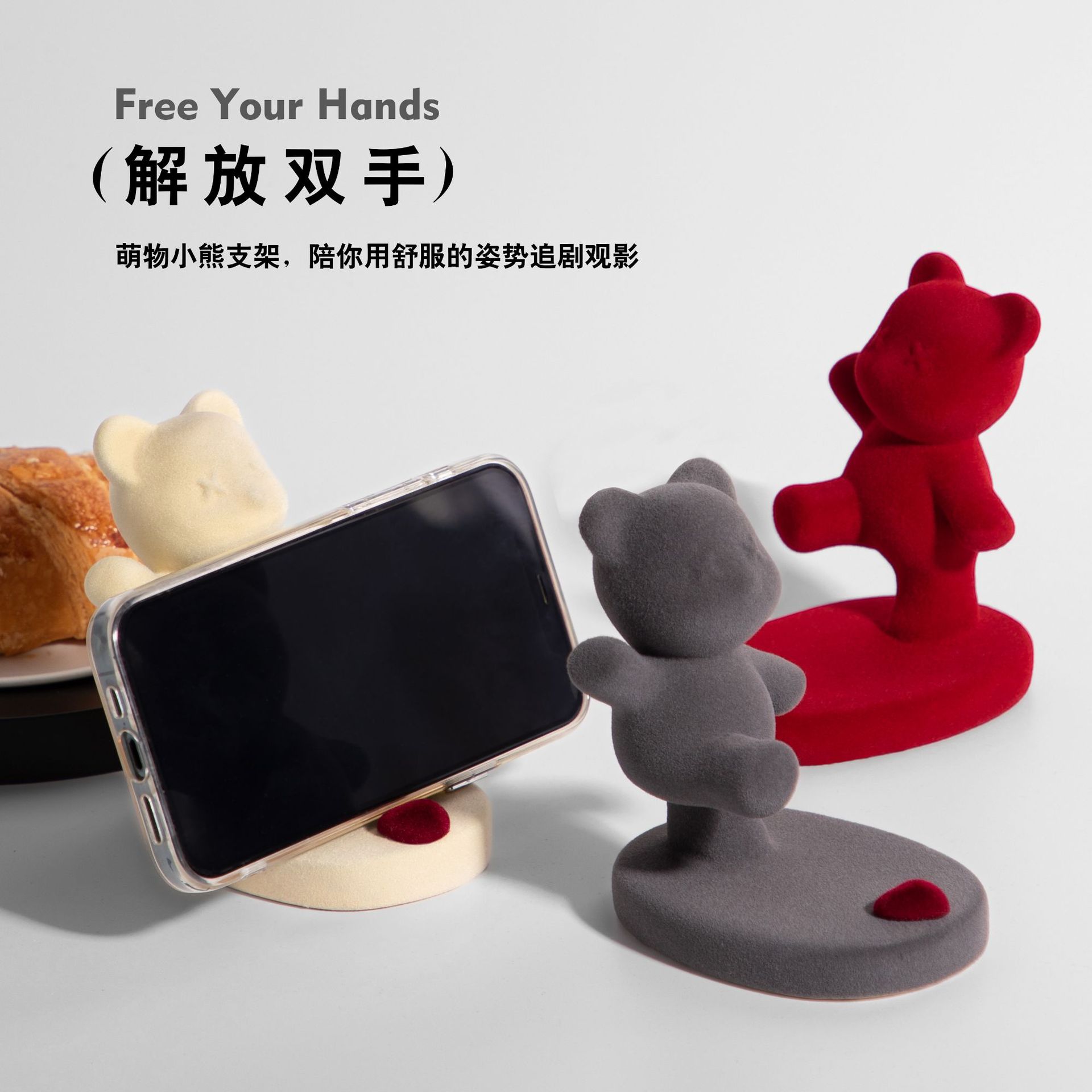 熊の植毛の携帯電話のスタンドのデスクトップの置物の事務室の書斎のタブレットのスタンドのデスクトップの追劇の神器