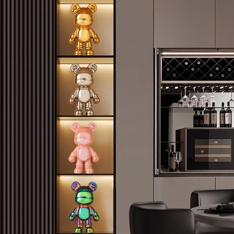 潮は暴力の熊の積み木の熊の樹脂の公仔を遊んで、現代のシンプルで軽い豪華なテレビの棚の酒の箱のテーブルの装飾品を並べます。