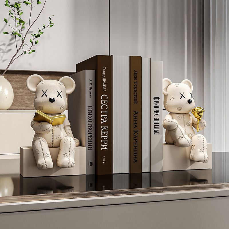 元のメーカーのクリーム風の暴力熊のデスクトップの小さい置物の創意の本は本によって客を立てて学校のテレビの戸棚の玄関にあります。