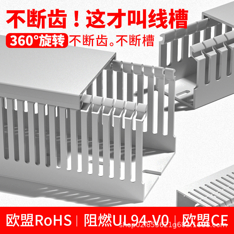 Pvc密歯線溝明装プラスチックplc弱電盤配線溝難燃グレーu型開口細歯pvc配線溝