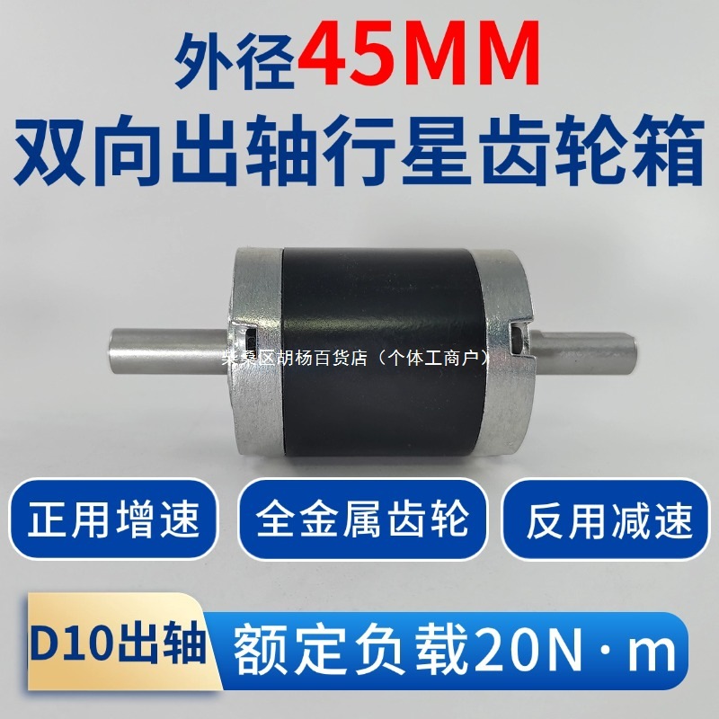 外径45mm遊星歯車減速機、加速減速機、定格20N・m双方向出力軸ギアボックス