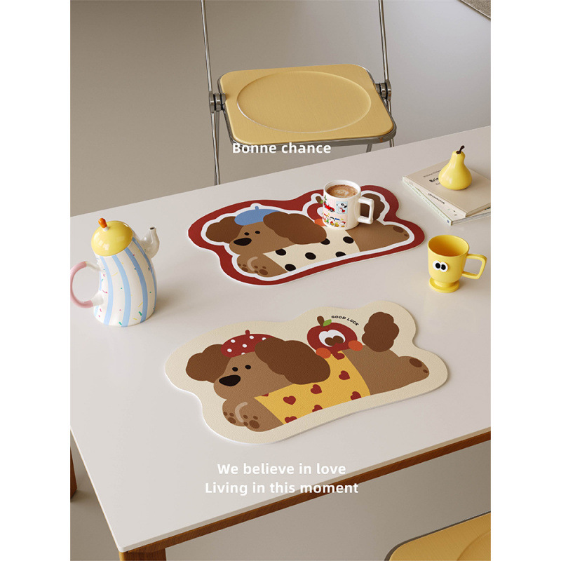 漫画ソーセージ犬革食マット防水防油無洗コーヒーテーブル断熱テーブルマット珪藻泥吸水カップマット