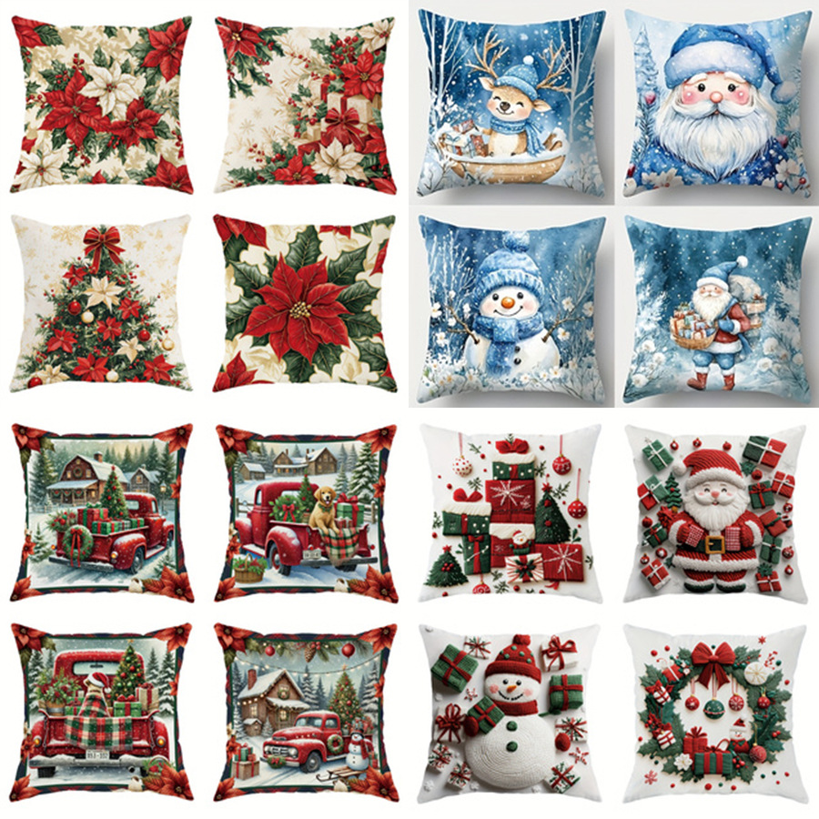 Temuアマゾンはクリスマスの模様がついた5種類の枕カバーのレトロな花クリスマス枕カバーの片面プリントを爆発させた