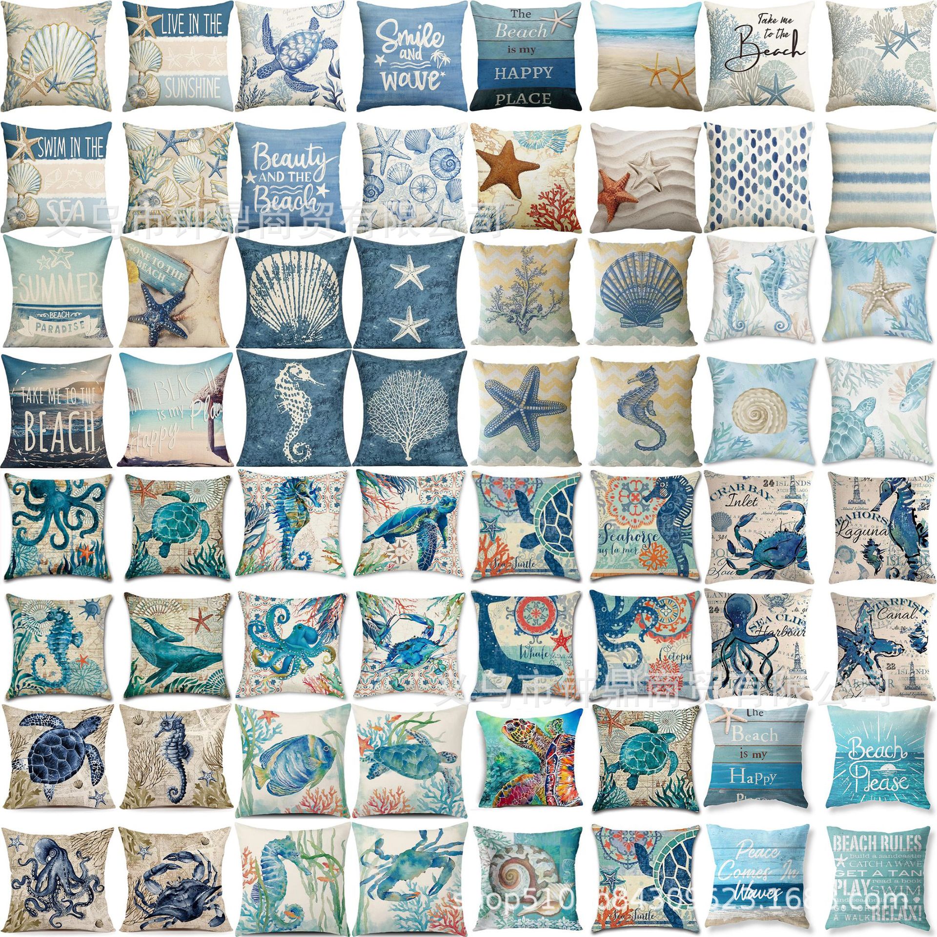 TEMU起爆夏抱き枕ビーチ海馬貝殻模様亜麻素材夏雰囲気装飾抱き枕カバー