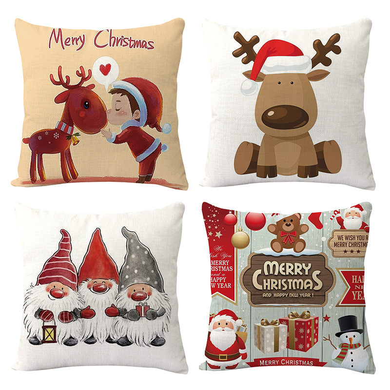 新商品クロスボーダー祭りリネン抱き枕カバークリスマスプリント四点セットソファクッション老人リビングクッションカバー