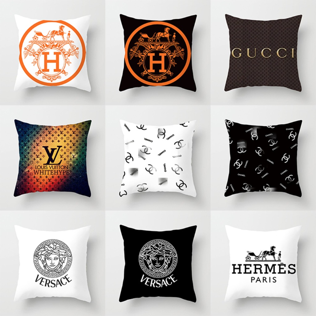 国境を越えた速達は欧米のファッションブランドロゴの個性的な図案を販売して、簡単な客間のソファーの抱き枕カバーを提供します。
