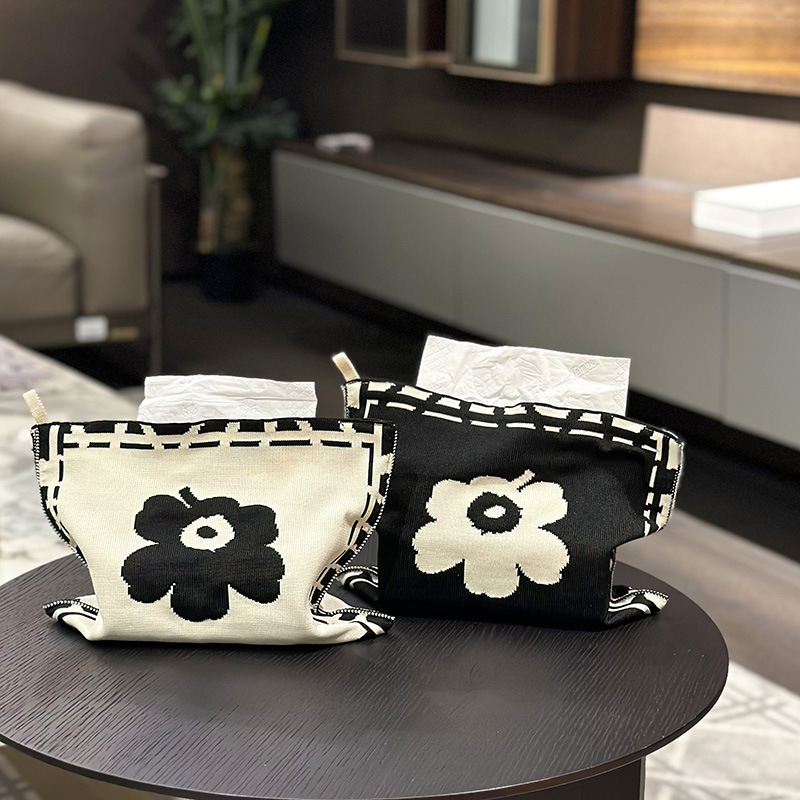 レトロ花ニットティッシュバッグ車載リビングティッシュバッグ収納北欧ナプキン食卓ティッシュケース