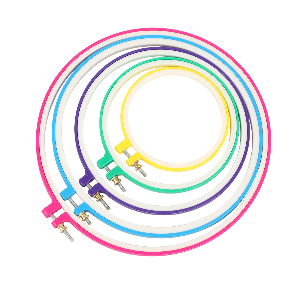 カラフルなプラスチック刺繍サークル手作り diy 刺繍クロスステッチテンションリング調整可能な刺繍テンション補助ツール