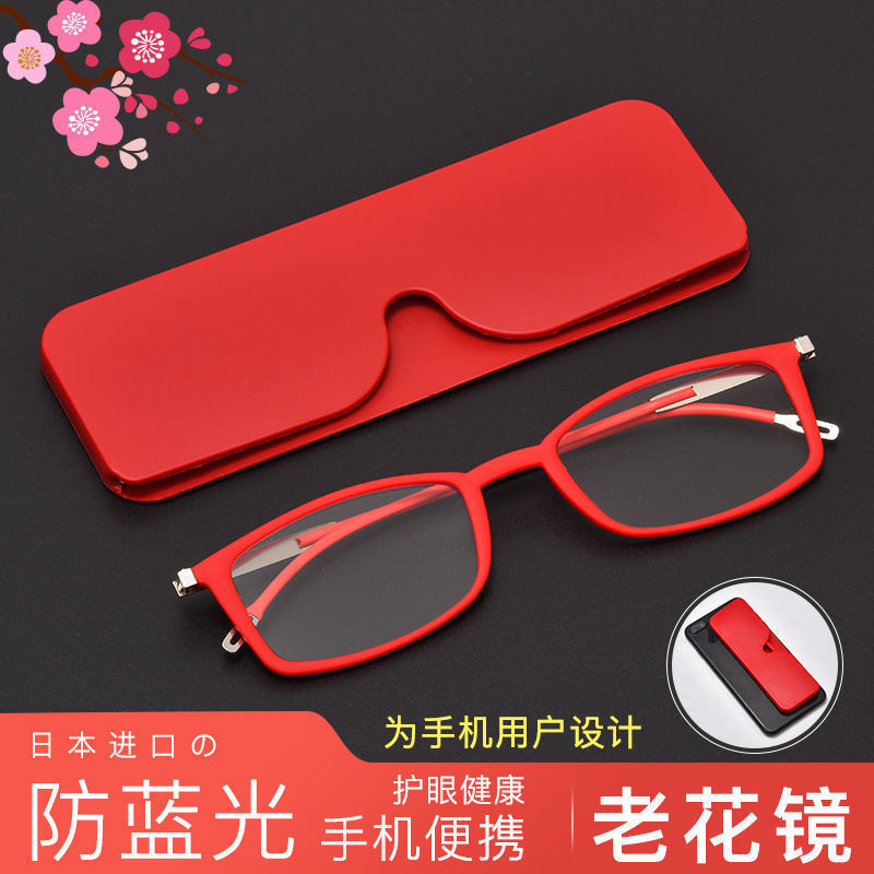新型高精細ブルーレイ防止老眼鏡ネット赤超薄型フレームカード収納ケースに携帯電話の財布を貼る