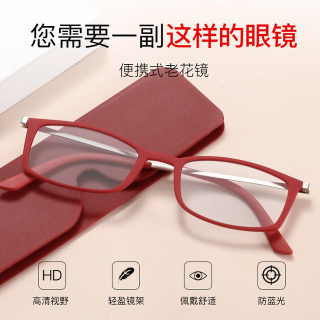 新品tr90超薄型折りたたみ财布メガネ高齢者用眼镜携帯付き目360回転老眼镜