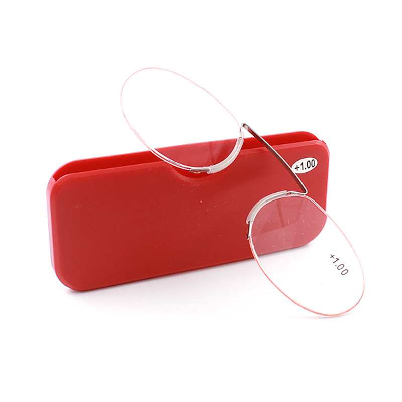 新型足のない老眼鏡財布眼鏡老人読書鏡携帯型老眼鏡クリップ鼻付き眼鏡ケース