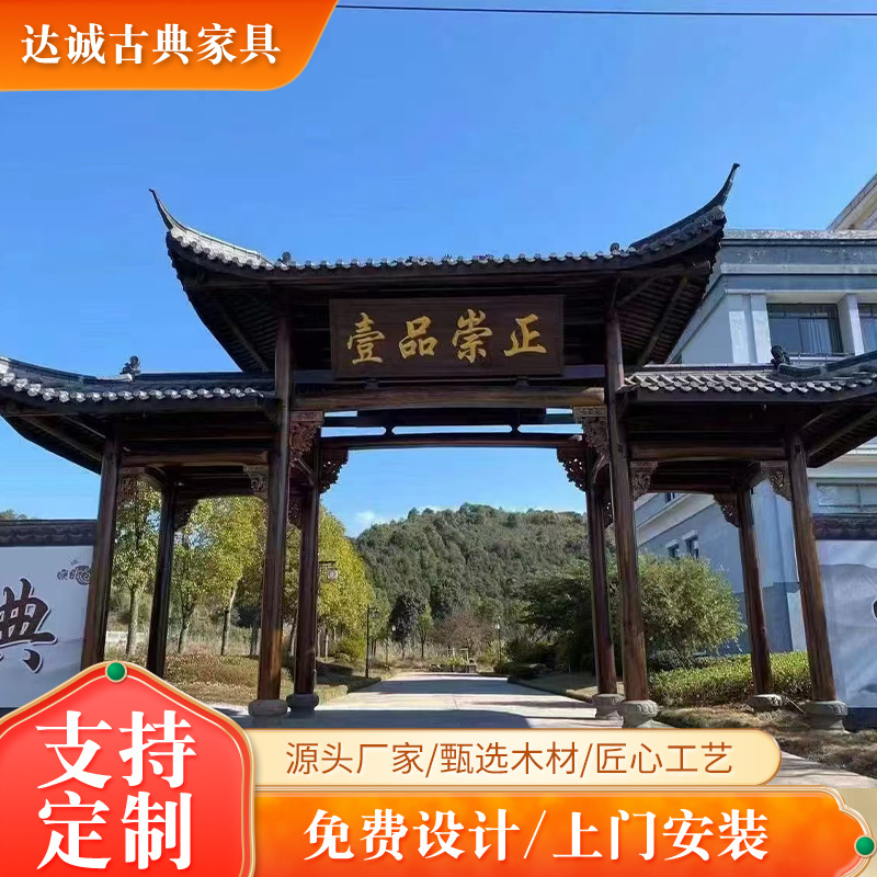 坊古建築実木鳥居古建門楼中国式古建築新中国式門楼防腐木田舎鳥居