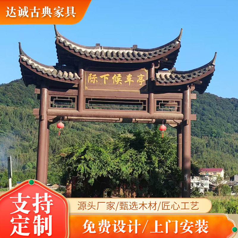 古建門楼防腐木凉亭は古牌坊四角凉亭屋外観光地区の田舎に屋外門楼を建設した