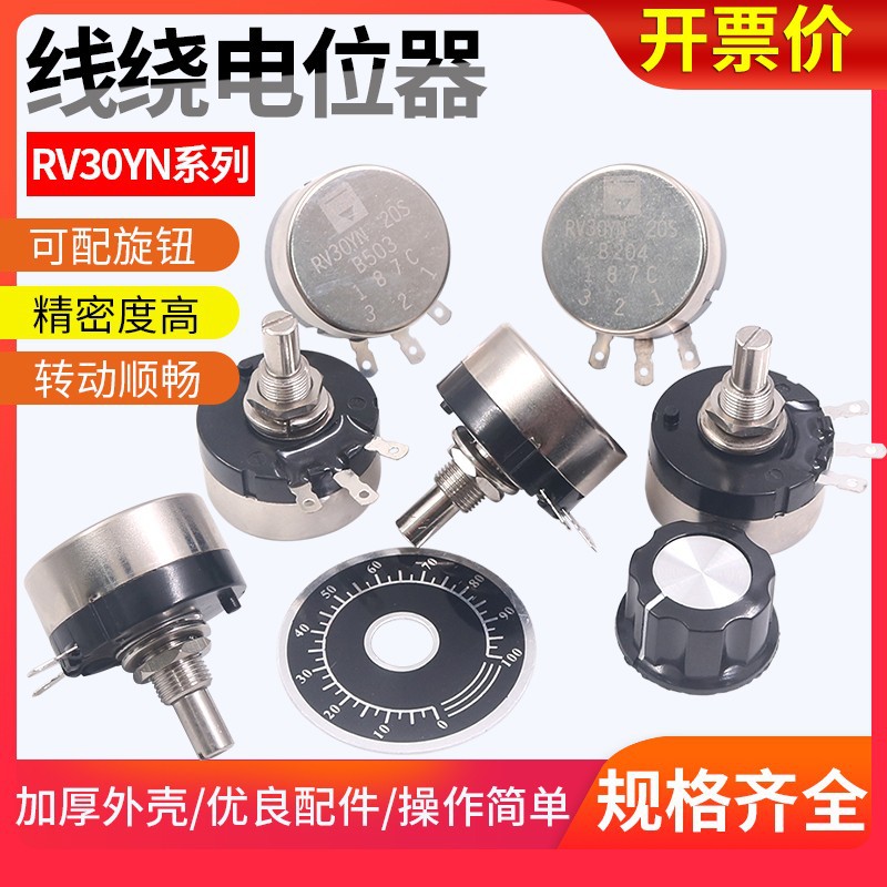 シングル10Kポテンショメータ可変抵抗ハイパワーRV30カーボンフィルムB502 103 3W 102 1K 202 2K