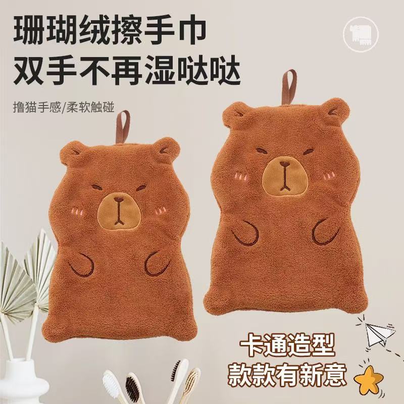 クロスボーダーカピバラコーラルベルベットハンドタオルは掛けても厚みがあり糸くずの出ないハンドタオル、吸水性ハンドタオル