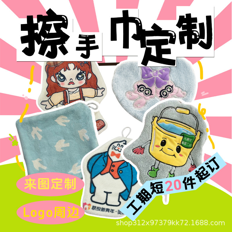 国境を越えたカスタムメイドの漫画のかわいいプリントコーラルベルベットハンドタオル刺繍入り厚手の吸収性タオル工場