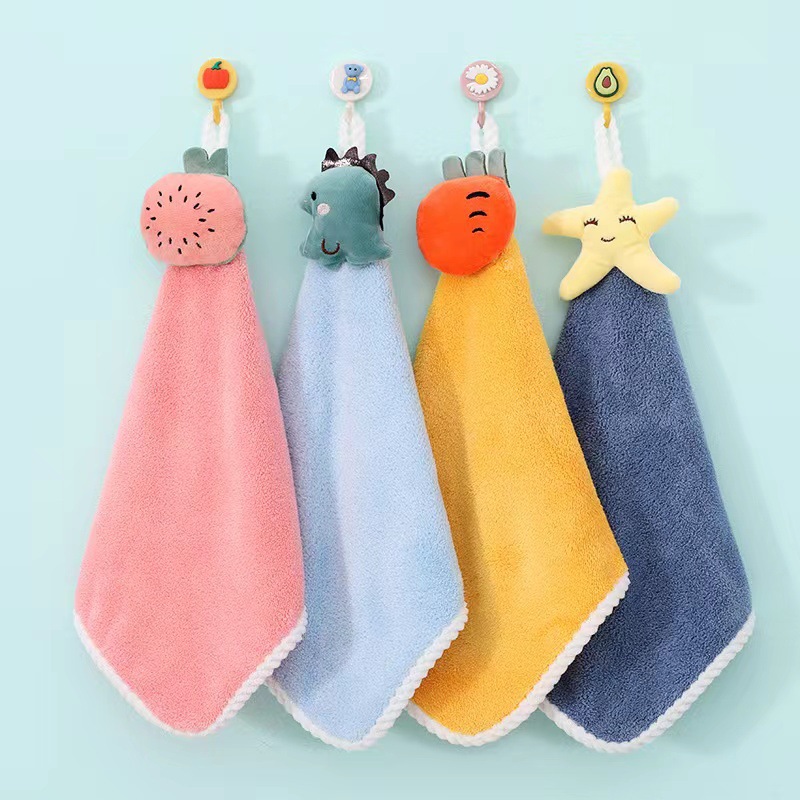 漫画の動物の吊り下げ式の極細繊維の手ぬぐいの蝶結びのサンゴの毛のタオルのシュニールの手ぬぐいの卸売り