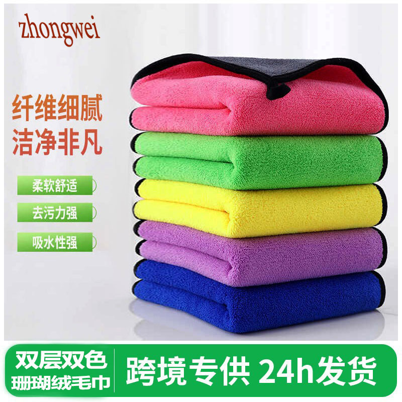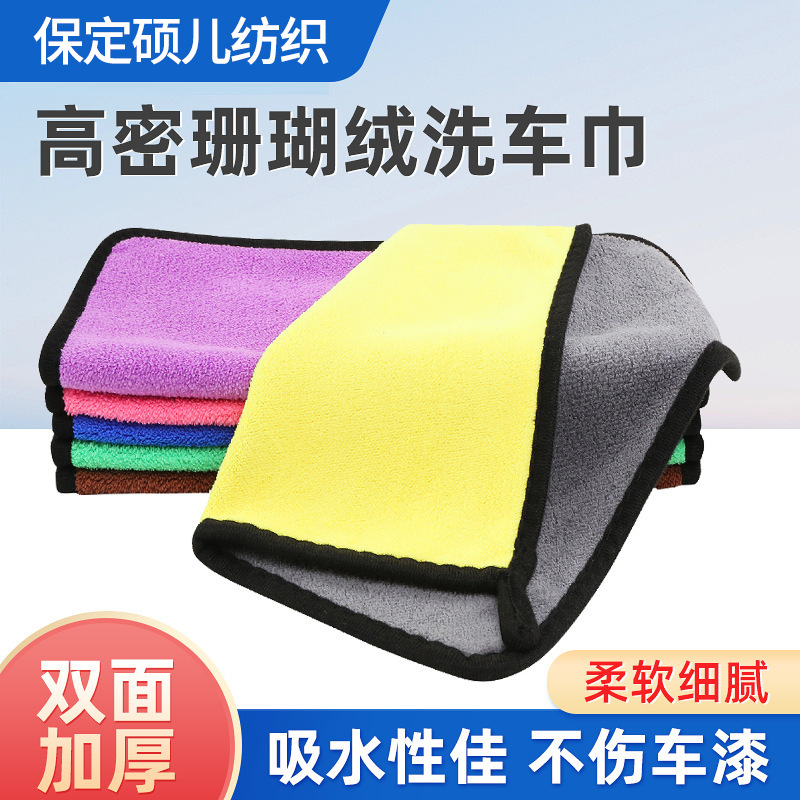 高密度2色両面超繊維洗車タオルサンゴパイル厚手吸水車用清潔拭きタオル直販