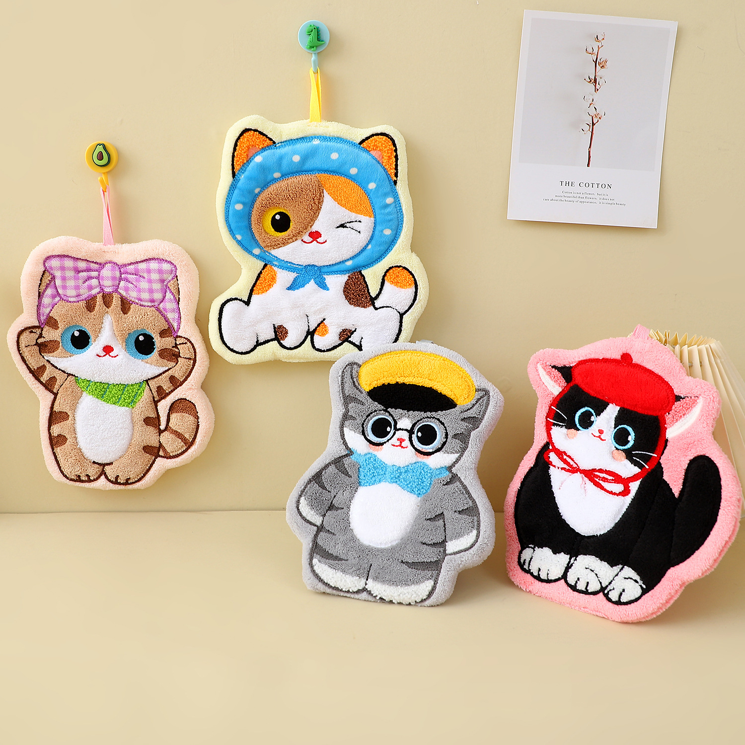 クリエイティブ猫ハンドタオル吊り下げ超吸収性キッチンバスルーム厚みのあるタオルハンカチ無臭コーラルベルベット