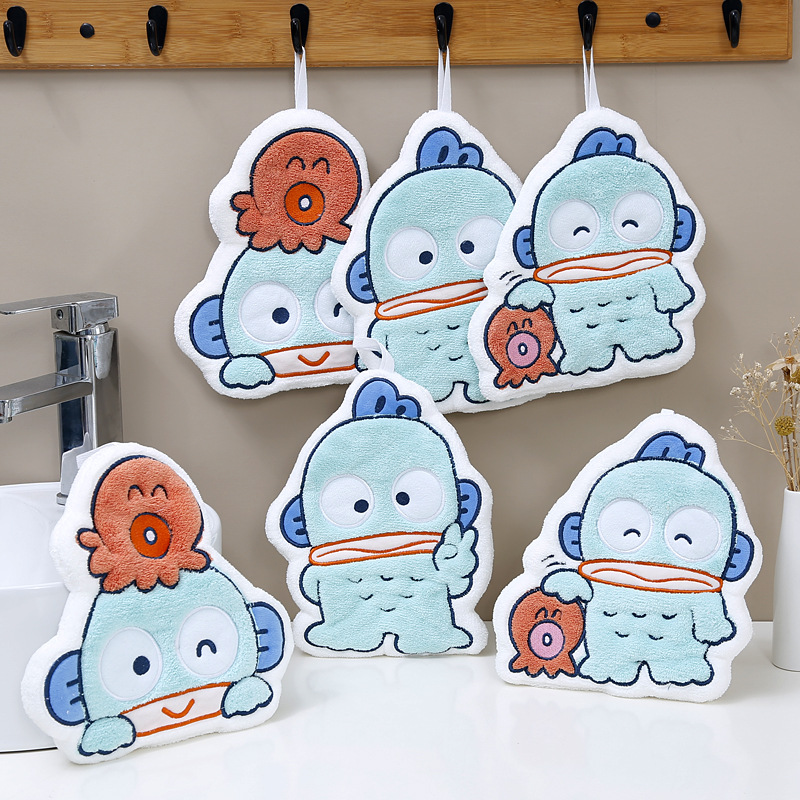 アグリーフィッシュハンドタオルメーカー卸売吸水速乾増粘ハンドタオル子供用コーラルベルベットソフトでかわいいハンカチ