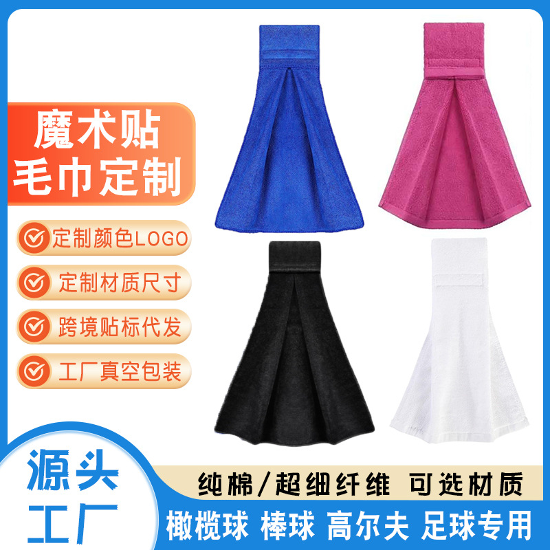 マジックテープタオルスポーツタオルクロスボーダーラグビータオルカスタムサッカーゴルフ掛けタオル刺繍ロゴ