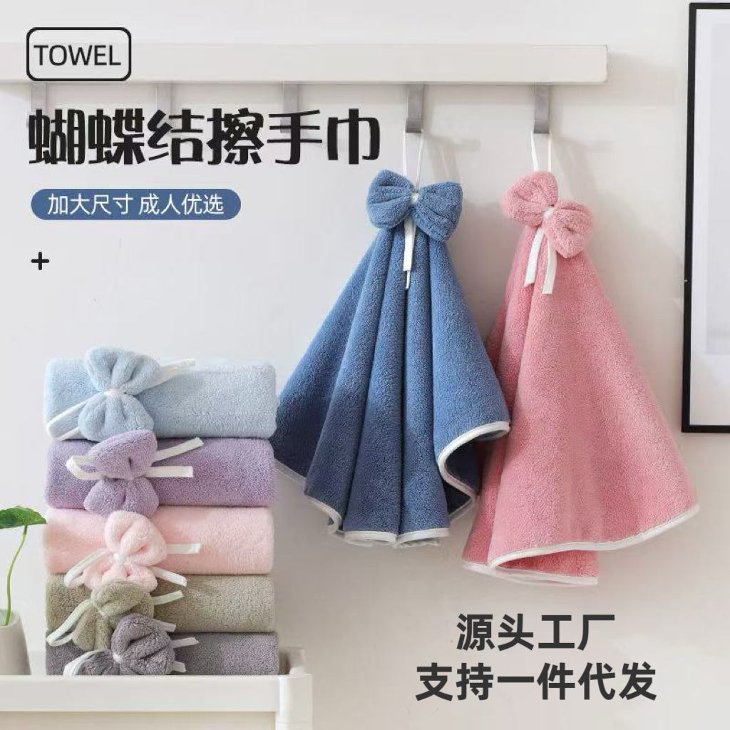 かわいいハンギングバスルームタオルコーラルベルベットリボン糸くずの出ない厚みのある吸収性の顔と手のタオル卸売