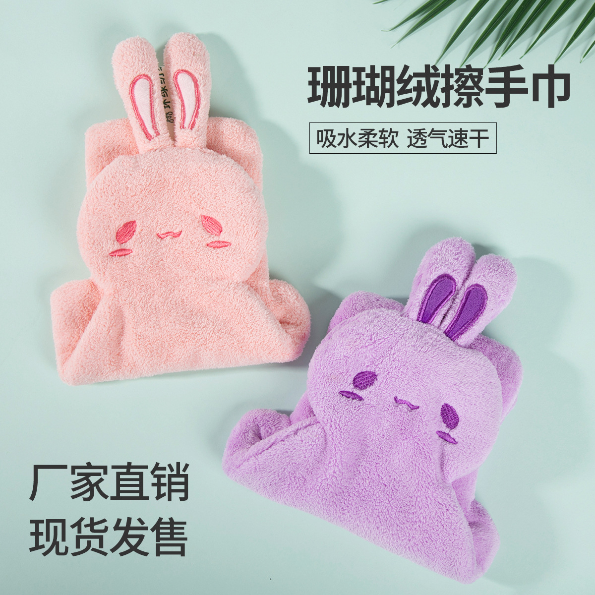 かわいいウサギのハンドタオル、かわいいハンギングキッチンハンドタオル、吸水性と厚みのある家庭用子供用コーラルベルベットハンドタオル