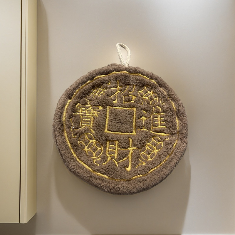 中国風招財進宝茶卓の手ぬぐいは古いサンゴのタオルの台所の強吸水に似せて銅銭の文字を厚くします。