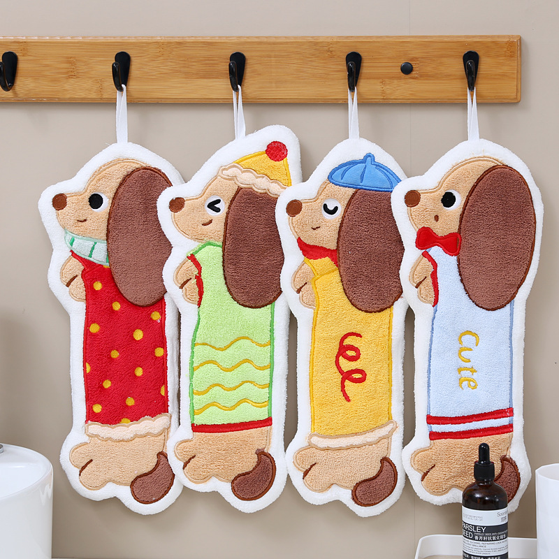 かわいい子犬の手拭きキッチン浴室吊り式タオルサンゴのベルベットの速乾吸水雑巾寮の足拭き布