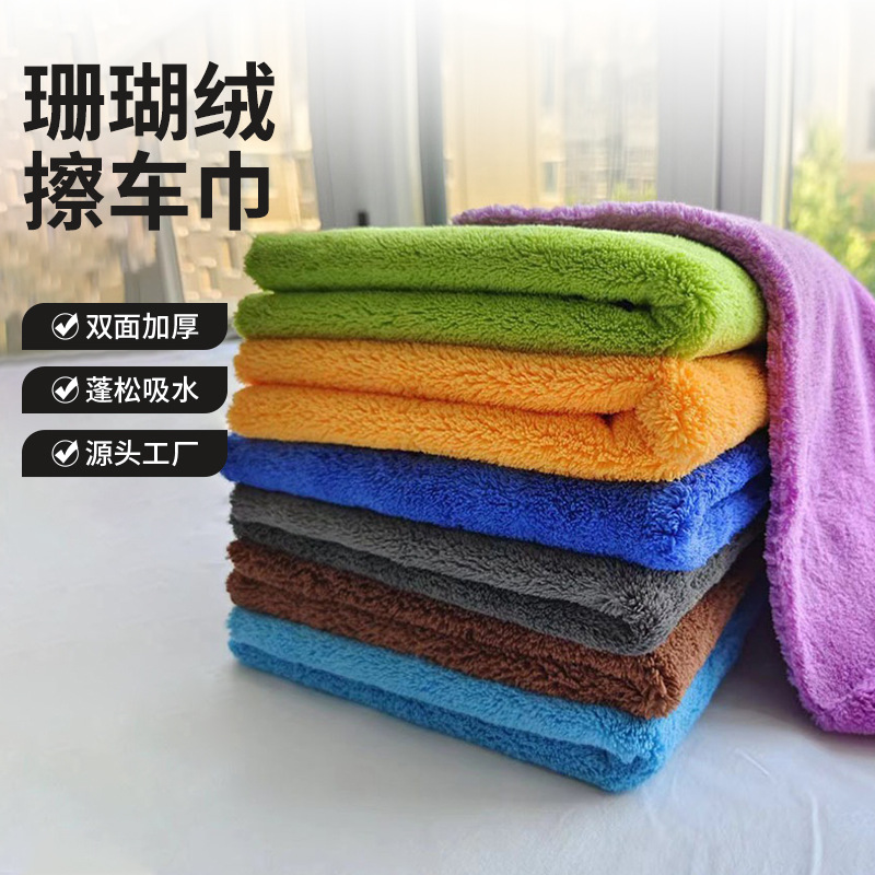 コーラルベルベット車拭きタオル、家事清掃用厚手布、卸売車内清掃タオル、吸水性洗車タオル