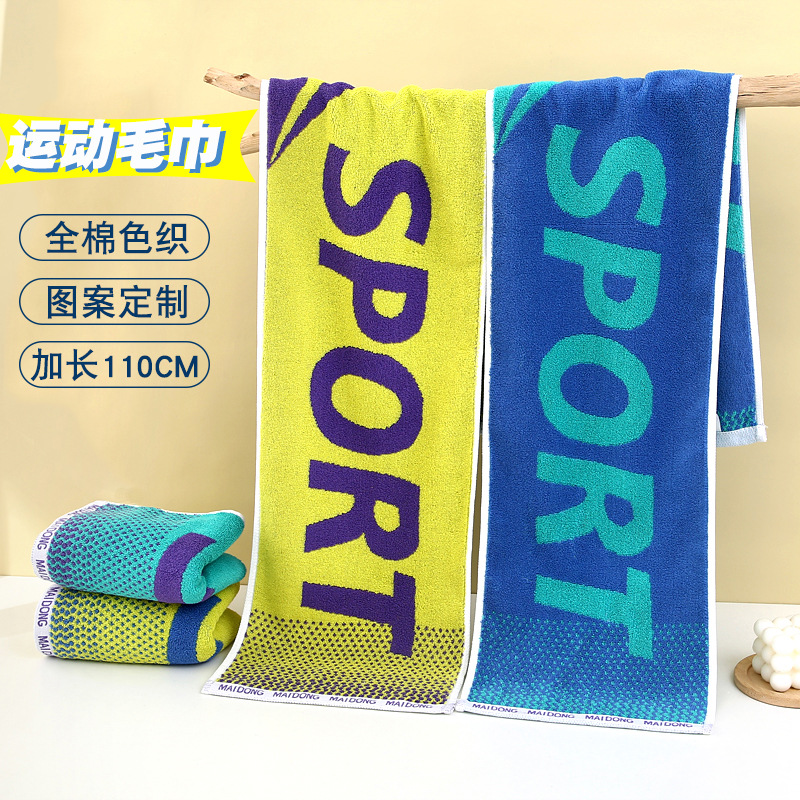 色織りジャカード運動タオル吸水綿吸汗ジム男女バスケットボールヨガランニング汗拭きタオル